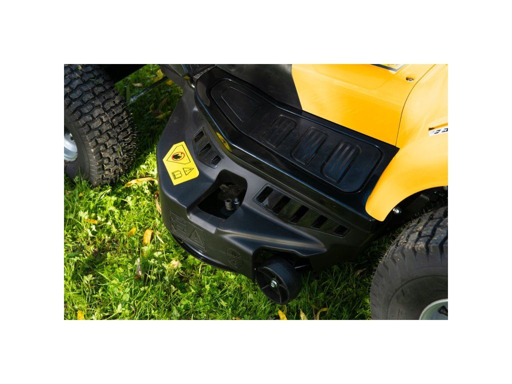 Traktor je posazen na velkých kolech (vpředu 15" a vzadu 18") pro lepší ochranu trávníku a větší komfort jízdy při překonávání teréních nerovností. Přední náprava je osazena systémem naklápění kol do strany při změně směru, který